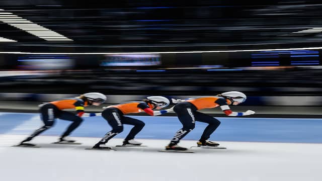 De schaatssters op de ploegenachtervolging hebben Nederland zondag de eerste titel bij de EK afstanden bezorgd. Sanne in 't Hof, Evelien Vijn en Kim Talsma rekenden in een rechtstreeks duel af met België. Op de 1.000 meter bij de vrouwen was er net geen oranje podium.